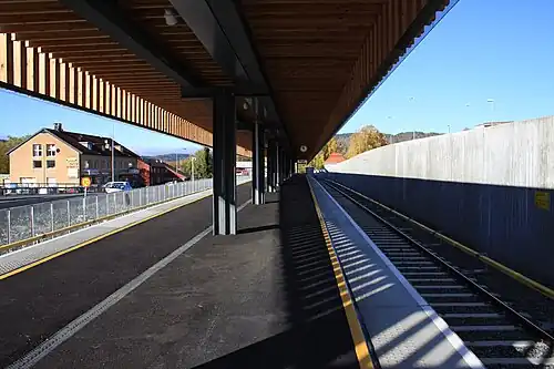 Kolsås station platform after re-opening in October 2014 | |||||||||||