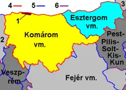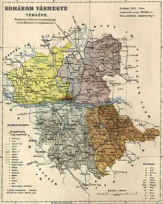 The Komárom comitatus arose in the 11th century as one of the first comitatuses of the Kingdom of Hungary. It was situated within a radius of about 20 km around Komárom.