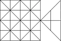 Komikan (from the Mapuche kom ikan "to eat all") is a two-player abstract strategy board game of the Mapuches (known by the Spaniards as the Araucanians) from Chile and Argentina. The same game is also played by the Incas under the name Taptana[1], Komina[1], Comina, Cumi[1], Puma, or Inca Chess. In modern Quechua, the language of the ethnolinguistic group that are the descendants of the Incas, Taptana means "chess". It is known by the Aymaras, a neighboring ethnolinguistic group to the Quechuan people, as kumisiña. Throughout South America the game is known as El león y las ovejas which literally means "the lion and the sheep". The lion is actually a puma as there are no lions native to the Americas. The Mapuches also call it El Leoncito. J. I. Molina, in 1787, described it as ‘el artificioso juego del ajedrez, al cual dan el nombre de comican’ which translates to "the ingenious game of chess to which they (the Mapuche) give the name comican".[1] Komikan may actually be the same game as Adugo (Jaguar and Dogs) as played by the Bororó people of Brazil. In 1898, Stewart Culin, named a game played in Peru as Solitario. The same name was also used by the game historian, Murray, in 1952. The game may also be known in Peru as Kukuli. Komikan is a hunt game, and specifically a tiger hunt game (or tiger game) since it uses an expanded Alquerque board. In Komikan, one player has only a single piece, usually called a "puma" or "jaguar", or "kom ikelu" (Mapuche, "the one which eats all"), or "leon" (Spanish, "lion"), which can move one space at a time or capture the other player's pieces by hopping over them. The other player has twelve pieces, usually called "sheep", "goats", perros ("dogs") or perritos ("little dogs"), that can only move one space at a time, but not capture, and attempt to surround and immobilize the puma or jaguar. [1] Pieces must move and/or capture following the pattern on the board. The expanded Alquerque board consist of an Alquerque board and a triangular patterned board attached on one of its side.