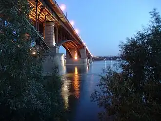 The Kommunalny Bridge or The Oktyabrsky Bridge (Russian: Коммунальный мост, Kommunalny Most) is an automobile bridge over the Ob River, connecting the Kirovsky, Leninsky and Oktyabrsky districts of Novosibirsk, Russia.