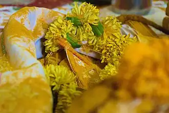 The Komuravelli Mallanna Swamy Temple is a Hindu temple located on a hill in Komuravelli village of Siddipet district in Telangana state, India. It is located near Siddipet on SH–1 Rajiv Rahadari.[1] The primary deity is Mallanna or Mallikarjuna Swamy, a form of Shiva. The deity is also called as Khandoba by the Maharashtrian people. The temple is located about 85 kilometers from Hyderabad. In the year 2024, an infrastructure push by the state government laid the Foundation stone for the Komuravelli railway station to ensure easy access to the temple. The station is part of the Kothapalli–Manoharabad line.[2]