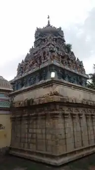 Kochengat Chola was a Chola king and one of the 63 nayanmars (saivite saints) of saivism. He is believed to have attained spiritual rebirth of a spider that fought with an elephant in its previous birth over the worship of the Hindu god Shiva. He had red eyes during birth as he remained in his mother's womb a little longer. His mother, looking into the babies red eyes said Kochengkannano (in Tamil ko=king, cheng=red, kan=eyes), which literally means king with red eyes and hence he was named Kochengat Cholan. After becoming a king, he followed saivism and built seventy Maadakovils, temples with elevated structure where elephants cannot reach the sanctum, in the Chola empire. The temple is counted as one of the seventy temples built by him.[2]