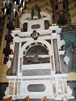 - The Manneristic tombstone of Stanisław Przyjemski is located at the north wall of the main nave of St. Bartholomew's Parish Church.