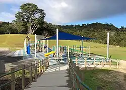 It was announced in May 2012 that the P.T.A. was in the process of applying for funding to build a new playground.[29] Support for the financing from The Trusts Community Foundation[30] was acknowledged and the playground was seen as adding "a new dimension to fun and fitness for [the] students."[31] The principal informed parents in a newsletter on 18 October 2012 that the playground was completed and had been officially opened.[32]