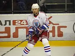 Konstantin Mikhailovich Zakharov (Russian: Константин Михайлович Захаров; born 2 May 1985 in Minsk, Byelorussian SSR, Soviet Union) is a Belarusian former ice hockey right winger. He played for HC Dinamo Minsk of the KHL. Internationally he played for the Belarusian national team at multiple tournaments