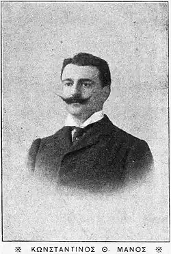 Konstantinos Manos (Greek: Κωνσταντίνος Μάνος; 1869–1913) was a Greek politician, poet, soldier and sportsman and former mayor of Chania.