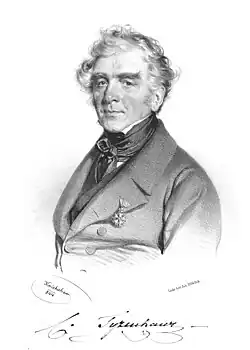 Tyzenhaus was born in Żołudek near Grodno to Count Ignacy and Maria Przezdziecka. After education at the University of Vilnius, he took part in the Napoleonic Wars (1812-14). It was shortly after the war that he became familiar with taxidermic techniques at the Paris Museum of Natural History. French was a second language in the Polish-Lithuanian artistocracy and his correspondents included Félix Édouard Guérin-Méneville (1799-1874). He was awarded a Officer's Cross of the Legion of Honor on August 10, 1813, and he continued to live in Clermont not returning to Lithuania until the Tsar declared an amnesty for former soldiers of the Grand Army. He then took a keen interest in the birds of the Vilnius region and made collections of eggs and skins. He also wrote some books on ornithology. A trained artist (a student of Jan Piotr Norblin), he also illustrated plates for books by Władysław Taczanowski. After his death, the zoological collections (with 1093 skins and 563 eggs) were donated by his son Rajnold Tyzenhauz (1830-1880) to the Archaeological Commission of Vilnius and became part of the Museum of Antiquities.[1]