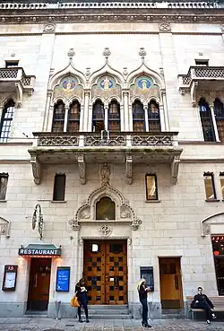 Designed by Ludvig Petersen, the building was completed in 1898 and inaugurated on January 7, 1899. The restaurant Konstnärsbaren was restored in 1931, under the design of architect Björn Hedvall (1889-1982). The restaurant consists of a dining room, a bar, and a banqueting hall decorated with wall paintings from the renovation in 1931.[3][4]