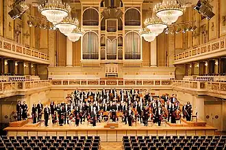 Kurt Sanderling was the longest-serving chief conductor of the orchestra, from 1960 to 1977. Subsequent chief conductors have been Günther Herbig, Claus Peter Flor, Michael Schønwandt (1992–1998), Eliahu Inbal (2001–2006), Lothar Zagrosek,[2] and Iván Fischer.[3][4] In November 2017, the orchestra announced the appointment of Christoph Eschenbach as its next chief conductor, effective with the 2019–2020 season, with an initial contract of 3 years.[5] In July 2021, the orchestra announced the extension of Eschenbach's contract through the 2022–2023 season.[6] He stood down as chief conductor at the close of the 2022–2023 season.[7]