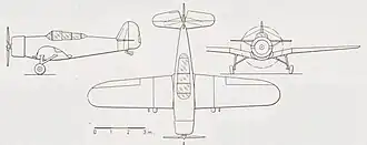 The F.K.56 was a low-wing monoplane powered by a 450 hp (336 kW) Wright Whirlwind R-975-E3 radial piston engine.[1] Designed as a basic trainer, the F.K.56 had two seats in tandem for the instructor and pupil under a fully enclosed canopy.[1] The first prototype flew on 30 June 1938 and had fixed conventional landing gear and a gull wing.[1] The second prototype had retractable landing gear and was powered by a 350 hp (260 kW) Armstrong Siddeley Cheetah X engine.[2] Testing showed that the aircraft was too stable for use as a training aircraft, while the gull wing was too complex for mass production. A new, un-gulled, wing, based on that of the Koolhoven F.K.58 fighter was therefore designed, which was incorporated in a third prototype, which reverted to the Whirlwind engine and was fitted with dual controls.[1][2] The third prototype flew on 5 December 1939.[2]