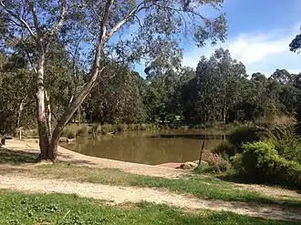 It remained relatively unaffected by suburban development in its immediate vicinity until the construction of the second stage of the Eastern Freeway in 1982. To provide some compensation for the significant loss of green space by the construction of the freeway, the Country Roads Board and the affected municipalities of Camberwell and Doncaster & Templestowe planted over 12,000 trees, primarily on the North Balwyn side of the freeway. The works also included undergrounding Koonung Creek for 2.4 km to allow for construction of the freeway.[3] These works formed the basis for the use of the area as parkland.