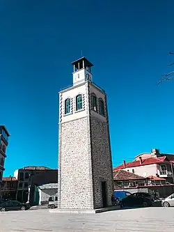 The Clock Tower of Korçë (Albanian: Kulla e Sahatit të Korçës) is a clock tower located in Korçë, Albania. Rising adjacent to the Mirahori Mosque, just south of the city’s Old Bazaar, its construction was inspired by the original 18th century clock tower that was destroyed by the earthquake of 1960.[1]