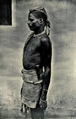 The 1901 census report noted the Koraga as being a lowly tribe of basket-makers and labourers, some of whom were employed as scavengers. They remain today among the untouchables, being considered as ritually polluted by Hindus, but there have in the past been claims that they are of Chandala stock.[4] Their folklore claims Hubbashika to have been one of their chiefs but the Kadamba narrative asserts a Chandala origin, that they are the descendants of the offspring of a Brahman woman and a Shudra father.[7] Edgar Thurston quotes M. T. Walhouse, who wrote in 1875 that this narrative was recorded by Brahmans and that, together with the Kapata, the Koraga were the lowest of the fifteen Chandala groups. However, Thurston thinks it probable that they were in fact the aboriginals of the region who were dispersed, dispossessed and turned into slaves by the influx of Aryans from the north of India.[8] but this narrative lack reliability