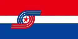 1948–present | Red field with a blue bar on the top and bottom separated by a thin white stripe, the red field charged near the hoist with a white disc with a red star in the center. Current, post-1992 standard shown. | |