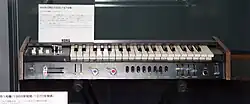 The miniKORG 700 is a monophonic analog synthesizer released by Korg in 1973, marking their entry into mass-produced synthesizers and their first monophonic synthesizer.[2][3] It was initially designed to be placed on top of an organ, so its controls are located below the keyboard facing towards the performer. An updated model, the miniKORG 700S, was launched in 1974, introducing a second oscillator that could be detuned, along with additional sustain and vibrato controls.[2]