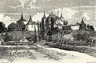During the Second World War part of the castle was destroyed and its collections were burned by the communists[2] or stolen after nationalization. Before the destruction of the castle, the library contained 9,000 volumes, consisting of collections of rare books.[3] It was destroyed together with the extensive natural history collection. The pavilions are now used as a silo, hostel and cultural school destinations.