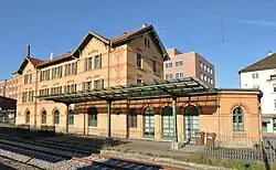 The first yard was 1,700 metres long and had 15 tracks. The old station building was demolished and rebuilt a few metres further east, where it still remains. At that time, it served as an office for the dispatch of freight and as accommodation for railway staff. A new brick entrance building was built on the west side for rail administration and for the handling of passengers, because most waiting rail passengers were bound for Stuttgart. Two new residential blocks were also built on the west side for rail workers. A locomotive shed and a military loading ramp for the Ludwigsburg regiments were built on the eastern track field.