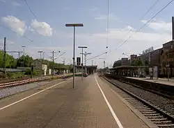 Kornwestheim station is located in the Ludwigsburg district of Kornwestheim in the German state of Baden-Württemberg. It is located on the Franconia Railway (German: Frankenbahn) and is a station on the network of the Stuttgart S-Bahn. It is near the junction of the Untertürkheim–Kornwestheim line (Schusterbahn) freight bypass. Kornwestheim passenger station was the site of a Deutsche Bahn car train loading facility until December 2007.