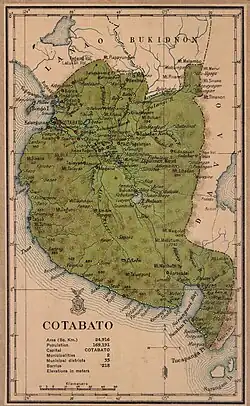 The area was first settled by the Blaan and Maguindanao.[9] Koronadal once comprised the area from the banks of Buluan Lake in the north to Barangay Polonoling in the municipality of Tupi, South Cotabato to the south, and from the Quezon mountain range to the northeast to the municipality of T'boli, South Cotabato to the southeast.