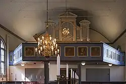 The first organ was installed in Korpilahti Church as early as 1853. Organs were still a rarity in rural churches at the time. The nearest organ had been in Kuopio, almost 200 km to the northeast.[5] The first cantor of the church was V.T. Forsgren, father of the local poet Martti Korpilahti. The current 22-voice organ was designed by B.A. Thulé and dates from 1904. The organ has survived in its original form, albeit with the later addition of a fan, and is now part of the Sibelius Academy's collection of Finnish historical organs and protected by the National Board of Antiquities.