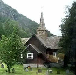 Kors Church (Norwegian: Kors kyrkje) is a parish church of the Church of Norway in Rauma Municipality in Møre og Romsdal county, Norway. It is located in the village of Marstein in the central part of the Romsdalen valley. It is the church for the Kors parish which is part of the Indre Romsdal prosti (deanery) in the Diocese of Møre. The brown, wooden church was built in a cruciform design in 1797 using plans drawn up by an unknown architect. The church seats about 120 people.[1][2]