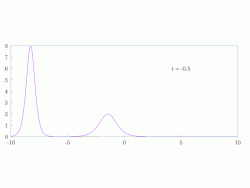 then the potential function has local maximum at ; there is a solution in which starts at this point at 'virtual time' , eventually slides down to the local minimum, then back up the other side, reaching an equal height, and then reverses direction, ending up at the local maximum again at time . In other words, approaches as . This is the characteristic shape of the solitary wave solution.