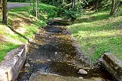 The lower course of the stream flows through a valley with meanders, without human intervention. An 8 km (5 mi) long educational trail leads through the valley.[4]