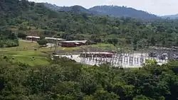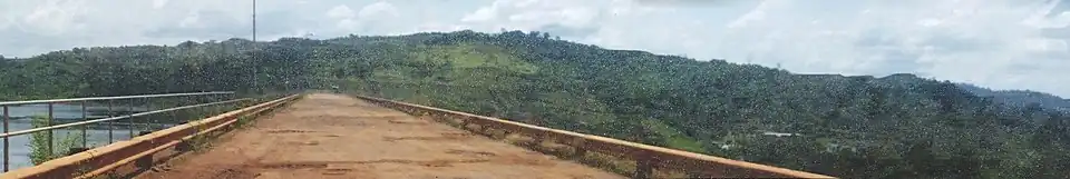 The Kossou Dam is an embankment dam that impounds the Bandama River about 32 kilometres (20 mi) northwest of Yamoussoukro in Côte d'Ivoire. It has a power generating capacity of 174 megawatts (233,000 hp), enough to power over 118,000 homes. The dam impounds the largest lake in Côte d'Ivoire, Lake Kossou.[1][2][3]