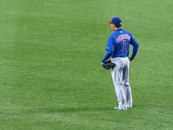 Kosuke Fukudome (福留 孝介, Fukudome Kōsuke, [ɸɯ̥kɯdome koːsɯ̥ke]; born April 26, 1977) is a Japanese former professional baseball outfielder. He played in Major League Baseball from 2008 to 2012, primarily with the Chicago Cubs and had a long spanning career in the Nippon Professional Baseball (NPB) with the Chunichi Dragons and Hanshin Tigers.