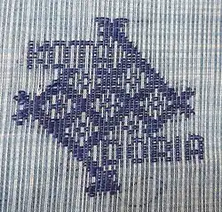 Since the weavers had come from Mysore, the fabric produced was called kota masuriya. It was woven on narrow 8 inch looms to make the traditional paags (turbans) and later on broader looms used for gossamer light saris.[2] Silk was added to the cotton in a 20:80 ratio approximately to give the sari strength. This has become the usual cotton silk Kota Doria blend. Nowadays hand woven silk Kota Doria saris have also become popular. At first the design known as a buti was small and regular but larger designs are now made according to fashion and taste. A standard sari is 6.5 metres long and includes the blouse piece. A very ornate sari can take one month to make and is an heirloom piece to be treasured. A genuine Kota Doria sari will contain the GI mark woven in one corner indicating that it has been hand woven using real silver and gold thread.