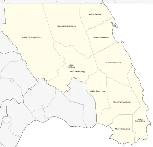 - ^ "Profil Daerah Kota Tinggi". Pentadbiran Tanah Johor (in Malay). Iskandar Puteri, Johor Bahru. 2022. Retrieved 23 November 2022.