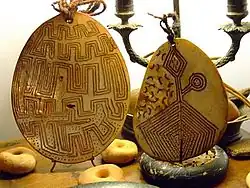Phallocrypts are decorative penis sheaths worn in parts of New Guinea during traditional ceremonies. They are usually made out of gourds or woven fibers and decorated with feathers, beads, cowry shells, and small metal ornaments. The most elaborate phallocrypts are sold to tourists as souvenirs and are not usually representative of ones used in ceremonies.[8]