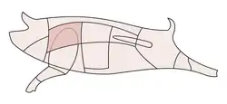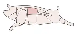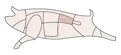Koteletts (Fr. côtelette „chop“, from Fr. côte resp. Lat. costa „rib“), also known as Karree, Karbonade[1] or cutlets, are a German meat dish made of slices of meat from the rib area, including the bone. The piece of rib is found on both sides of the spine behind the neck. Koteletts are typically offered from pork, veal and mutton, but they can also come from beef.