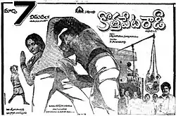 Kottapeta Rowdy is a 1980 Indian Telugu-language action drama film, produced by Suryanarayana, Satyanarayana under Satya Chitra banner and directed by P. Sambasiva Rao. It stars Krishna, Jaya Prada in lead roles while Chiranjeevi in special appearance and music composed by K. V. Mahadevan.[1][2]