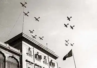 ![]() Egyptian aircraft flying over Koubbeh Palace to celebrate the royal wedding of King Farouk and Queen Farida | |