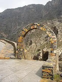 The cliffs on the side of the gorge provide a roosting site for the Lammergeier vulture.[1]