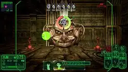In the tradition of classic dungeon crawlers such as Wizardry, the RPG segments assume a tile-based first-person perspective. Actions are turn-based, with characters having a given number of action points to spend before the turn ends. Attacks are carried out as if it were an action game, allowing the player to aim and shoot with a cursor.[10] Atypically for the time, the game features a crafting system, through which two items can be combined to synthesize a new one. Unlike traditional dungeon crawlers, dungeon segments also heavily feature puzzles, some of which require use of this crafting system.[11]