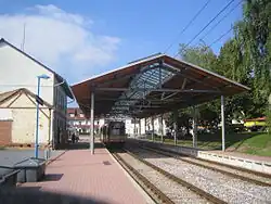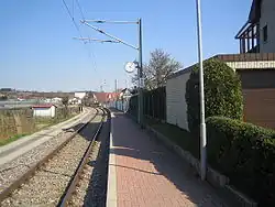 The Kraich Valley Railway (German: Kraichtalbahn) is a branch line in southwestern Germany running from Bruchsal to Menzingen. It is now integrated as line 32 of the Karlsruhe Stadtbahn.