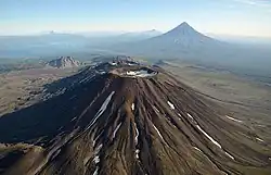 The Kuril-Kamchatka island arc contains more than 60 recently active volcanoes.[2]: 383 The massif of the Krasheninnikov volcano contains two overlapping stratovolcanoes made up of three edifices, with the most recent historic partial cone off the northern cone being called the mid-North cone.[2]: 395 According to the Smithsonian Institution's Global Volcanism Program, the volcano's last eruption before 2025 was dated to 1550 using tephrochronology.[1]