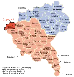 Kreis Schwerin an der Warthe (Polish: Powiat skwierzyński) was a district in Prussia, first in the southern administrative Region of Posen within the Prussian Province of Posen (until 1920), then within the Province of the Frontier March of Posen-West Prussia (until 1 October 1938) and at last as part of the administrative Region of Frankfurt within the Province of Brandenburg (until 1945). It presently lies in the western part of Polish region of Lubusz Voivodeship.