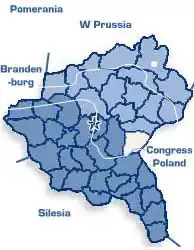 List of all communities with more than 400 inhabitants (as of 1910). The table shows the traditional Polish name, the name during the Prussian administration from 1815 to 1919 and the name during the Nazi occupation.