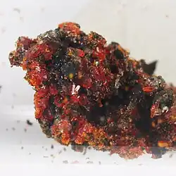 Kremersite is a rare mineral which is a hydrated multiple chloride of iron, ammonium and potassium with the formula: (NH4,K)2FeCl5·H2O. Kremersite is a brown-red to orange mineral that crystallizes in the orthorhombic system. It is a water-soluble mineral that is found around volcanic fumaroles. Occurs at Vesuvius, Italy and Mount Etna, Sicily. It was discovered in 1853 and named for the German chemist, Peter Kremers (born 1827).