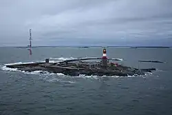 Lonna 60°9′16.17″N 24°59′23.2″E / 60.1544917°N 24.989778°E / 60.1544917; 24.989778 is a small island north of Iso Mustasaari that was used as the main naval mine depot of Krepost Sveaborg. The island had three masonry and one wooden mine storage magazines and workshops, living quarters and equipment storage for mine company ships. At the end of the war the magazines had nearly 500 mines stored with another 650 mines in the open.[1]: 96