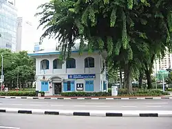 The North Canal Road Post Office was opened in 1908.[1] It was built in the standard post office design used by the British Colonial Administration. It features a decorative arch and two large moulded brackets, as well as a hip roof. It was closed from 1972 to 1973 due to renovations. In 1988, it was closed as it had been replaced by a newer post office on nearby Pickering Street. The building was initially to be demolished.[2] However, it was instead reopened as the Kreta Ayer Neighbourhood Police Post on 15 January 1990, becoming the first neighbourhood police post within the Central Business District.[3] By 1995, crime rates in the surrounding area had fallen by about twenty percent.[1] As it was located between the Ministry of Labour building and the Pidemco Centre which housed the Singapore Immigration Department, the post was a popular place to report loss of work permits or passports. It was amongst the busiest neighbour police posts, averaging around 600 reports a month.[4] Beginning in 2000, those wishing to hold an event at the nearby Speakers' Corner were required to apply for a permit at the post.[2]