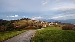 The local church on a hill above the settlement is dedicated to the Holy Cross and was built around 1500. It contains many well-preserved frescos from 1502 that depict the legends of Saint Ulrich, to whom the church was dedicated until 1867, and of Saint Corbinian. Some of the frescos in the nave, dating to around 1530,[5] are believed to be by Jernej of Loka. The hill with the church is a popular destination for short outings by locals.[6]