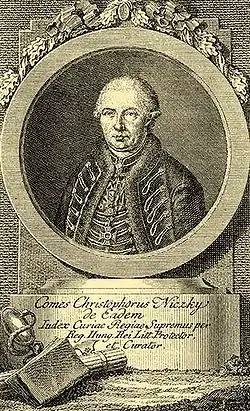 Count Kristóf Niczky de Niczk (February 11, 1725 in Sümeg – December 26, 1787 in Buda) was an influential Habsburg bureaucrat under Maria Theresa and Joseph II.