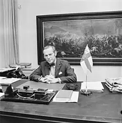 He headed the Swedish People's Party of Finland for one year between 1973 and 1974.[3] Then he served as the governor of Helsinki Savings Bank.[1]