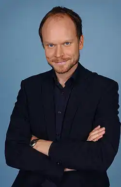 For the larger audience he became known for the radio show Hassan at Sveriges Radio and Knesset at ZTV.[3] In 1996 he started working in television at TV4 where he presented his own talk show Sen kväll med Luuk.[4] The talk show lasted until 2004. In early 2005, he started presenting God natt, Sverige along with his then wife Carina Berg.[5] The show was cancelled after just one season and Luuk left TV4 after that.[5] With the help of Peter Settman Luuk got work at SVT and in late 2007 he presented the show Videokväll hos Luuk.[6]