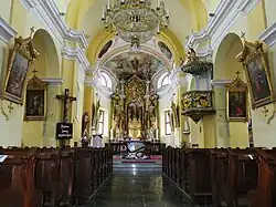 The local parish church is dedicated to Saints Cosmas and Damian and belongs to the Roman Catholic Diocese of Novo Mesto. It dates to the 12th century with numerous alterations over the centuries.[6]