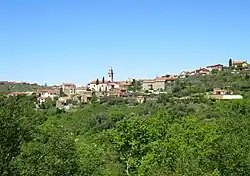 Krkavče (pronounced [ˈkəɾkau̯tʃɛ]; Italian: Carcauzze[2] or Carcase[3]) is a village in the City Municipality of Koper in the Littoral region of Slovenia close to the border with Croatia.[4] It includes the hamlets of Abrabi, Draga, Girič, Glavini, Hrib, Mačkujek, Pršuti, Rov, Škrljevec, Solni, Sveti Maver, and Žvabi.[5]
